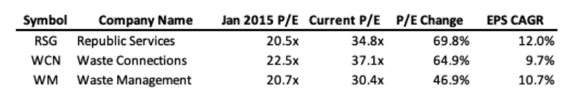 The returns on waste stocks have been attractive for many, many years. I wanted to write a bit about what I’ve learned about the industry over the past few months of studying it. The model is straightforward: companies collect waste from residential, industrial, or commercial customers and dispose of it at landfills, transfer stations, or recycling facilities (including the increasingly popular renewable natural gas facilities). They earn revenue through hauling fees, tipping fees at disposal sites, and various charges tied to handling.